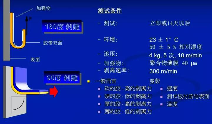 剝離強(qiáng)度是指將一條膠帶從標(biāo)準(zhǔn)的測(cè)試板以指定速率及180°&90°角度剝下所需要的力。