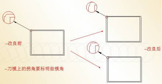 產(chǎn)品拐角的設計,一般設置為圓角或鈍角,避免銳角,直角,如下圖: