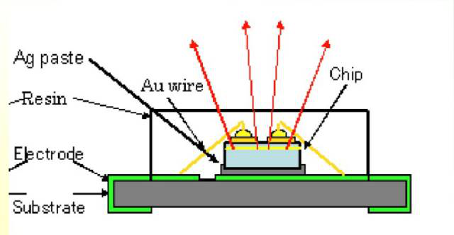 引腳式電子封裝就是常用的3-5mm電子封裝結(jié)構(gòu)。一般用于電流較?。?0-30mA),功率較低(小于0.1W)的LED電子封裝。主要用于儀表顯示或指示,大規(guī)模集成時也可作為顯示屏。其缺點(diǎn)在于電子封裝熱阻較大(一般高于100K/W),壽命較短。