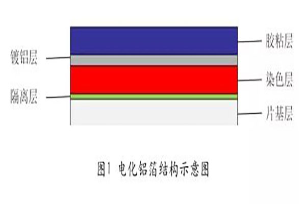 熱燙印是指利用一定的燙印印版,通過加熱加壓的方式將燙印材料轉(zhuǎn)移到承印物的印后表面整飾加工技術(shù)。目前,主要的燙印材料有電化鋁箔、全息燙印箔、復(fù)合箔、金屬箔、粉箔等,其中電化鋁箔是現(xiàn)代燙印使用最多的一種材料,其膜層結(jié)構(gòu)如圖1所示。