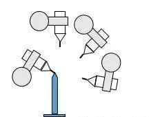 工具坐標(biāo)系可采用N(N>=4)點(diǎn)法確定:機(jī)器人TCP通過N種不同姿態(tài)同某定點(diǎn)相接觸,得出多組解,通過計(jì)算得出當(dāng)前TCP(Tool Central Point,中文叫做工具中心點(diǎn))與工具安裝法蘭中心點(diǎn)(tool0)的相應(yīng)位置,坐標(biāo)系方向與tool0一致。