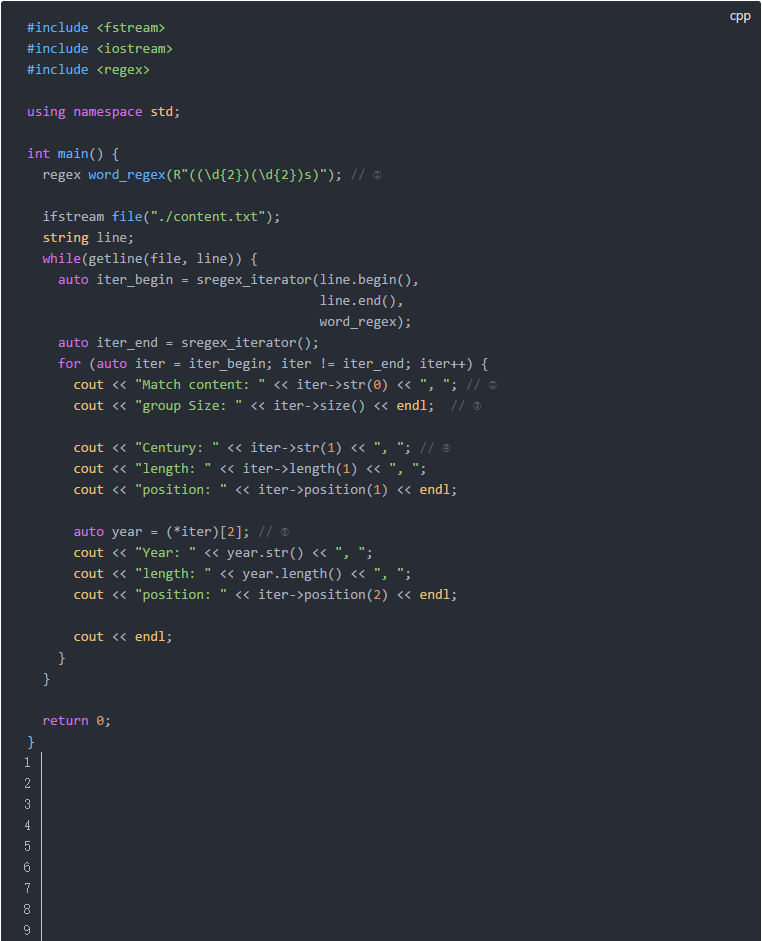 接下來我們會看到更多的示例。同時,也會看到C++正則表達(dá)式API的更多功能。 為了便于下文示例的講解,我們以維基百科上對于正則表達(dá)式的介紹文本為基礎(chǔ)。
