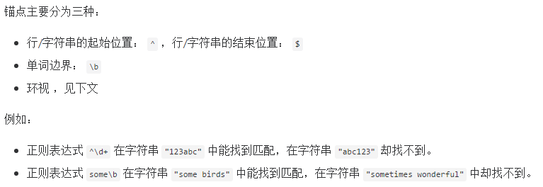 錨點(diǎn)是一類特殊的標(biāo)記,它們不會匹配任何文本內(nèi)容,而是尋找特定的標(biāo)記。你可以簡單理解為它是原先表達(dá)式的基礎(chǔ)上增加了新的匹配條件。如果條件不滿足,則無法完成匹配。