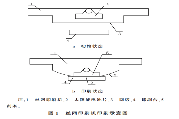 絲網(wǎng)印刷技術(shù)是晶體硅太陽(yáng)能電池表面金屬化中最為成熟的工藝技術(shù),但是在目前追求高效率、低成本的趨勢(shì)下,晶體硅太陽(yáng)能電池正電極柵線正朝著精細(xì)化、復(fù)雜化、大高寬比方向發(fā)展,絲網(wǎng)印刷技術(shù)已逐漸顯示出它的局限性。隨著技術(shù)的發(fā)展,多種新技術(shù)已初步取得了很好的效果[1—4],如二次印刷技術(shù)、激光刻槽埋柵(LGBC)技術(shù)、激光穿孔技術(shù)(EWT&MWT)以及噴墨打印技術(shù)等。但由于工藝穩(wěn)定性有待提高,不適應(yīng)規(guī)?;?、產(chǎn)業(yè)化生產(chǎn)要求,因此,傳統(tǒng)印刷技術(shù)依然處于主導(dǎo)地位[5—6]。本文針對(duì)晶硅太陽(yáng)能電池正面電極印刷過程中存在的質(zhì)量問題,通過試驗(yàn)研究和經(jīng)驗(yàn)總結(jié),提出切實(shí)有效的工藝參數(shù)設(shè)置及優(yōu)化方案。