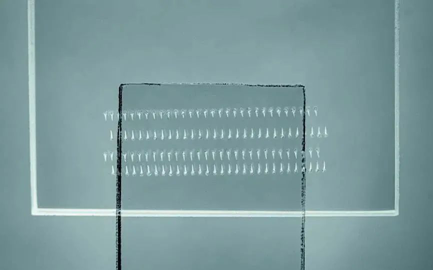 圖4 微結(jié)構(gòu)的顯微圖(俯視圖):玻璃是通過USP激光 束逐層燒蝕的。與 二氧化碳激光束加工相比,高精度燒蝕可以生成幾乎沒有任何損壞的結(jié)構(gòu) ©Fraunhofer ILT