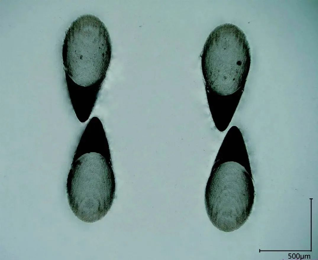 銩光纖激光器被用于后續(xù)的連接。該激光器的發(fā)射波長(zhǎng)為1940nm,發(fā)射的激光束在大多數(shù)工程聚合物的自然吸收范圍內(nèi)。這種激光器通常用于透明塑料的透射焊接,因?yàn)樗梢栽诓惶砑游沾龠M(jìn)劑(例如:炭黑)的情況下熔化塑料。其應(yīng)用一般包括醫(yī)療和生物部件,如微流控芯片。在氣動(dòng)卡盤中,塑料被夾在結(jié)構(gòu)化玻璃樣品的下方,然后它們?cè)诟邏合卤粔涸谝黄?。激光束穿透玻璃樣品并使塑料大面積熔化(圖2)。施加的粘合壓力使塑料熔體流入微結(jié)構(gòu)和納塑料的固化帶來(lái)牢固的連接(圖3)。憑借這些結(jié)構(gòu),僅通過熔融的塑料及其表面的潤(rùn)濕即可產(chǎn)生高粘附力。該結(jié)構(gòu)以及因此形成的互鎖能夠產(chǎn)生剛性連接。這種方法不需要諸如粘合促進(jìn)劑或粘合劑等其他材料。除了透明塑料外,還可以加入其他所需的顏色組合,從而為設(shè)計(jì)師提供了更大的設(shè)計(jì)自由度。