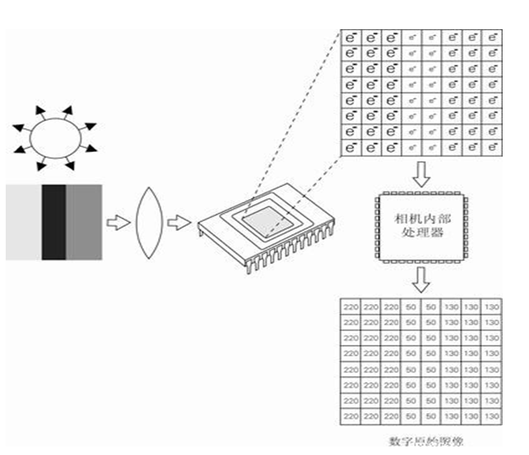 曝光結(jié)束后,這些電子被從 CCD 芯片中讀出,并由相機內(nèi)部的微處理器進行初步處理。此時由該微處理器輸出的就是一幅數(shù)字圖像了。