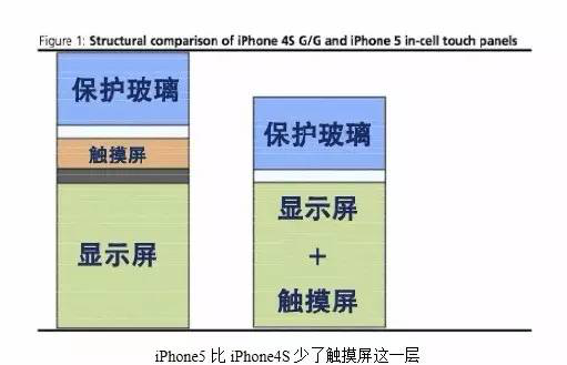 兩者的共同點均可以減少貼合次數(shù),這樣也就可以達到節(jié)省成本提升貼合的良品率。另外由于少了一層觸摸層,從而也可以達到節(jié)約材料成本和實現(xiàn)輕薄化的目的,而其中蘋果iPhone5 就是采用了In Cell的技術(shù)。