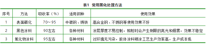 在產(chǎn)品激光淬火前,工件表面粗糙度值很小,在淬火中會嚴(yán)重影響材料表面對激光光能的吸收率。因此,在激光淬火前需要對待處理工件表面進行預(yù)處理。表面預(yù)處理方法很多,包括磷化法、提高表面粗糙法、氧化物涂料法、黑色涂料法等,其中最常用的是磷化法、黑色涂料法和氧化物涂料法,如表1所示。