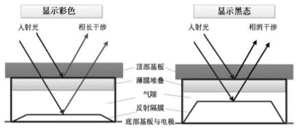 圖1 IMOD顯示器件結(jié)構和工作原理