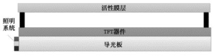 TMOS顯示由照明系統(tǒng)、導光板TFT像素驅(qū)動電路與活性層4部分組成(圖7)。TMOS結(jié)構使用RGB LED等作為光源,并使用合適的粘附手段保證照明系統(tǒng)與導光板的匹配性,阻擋漏光,重新定向雜散光線進入系統(tǒng)。而導光板作為系統(tǒng)中的核心光源透過介質(zhì),常使用標準的TFT-LCD玻璃基板進行制作。