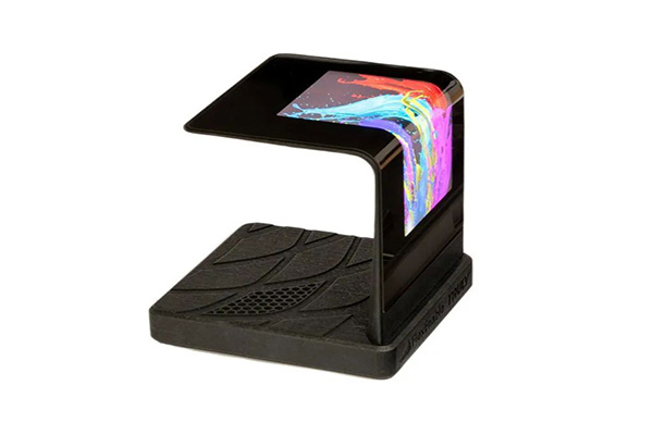 不含玻璃的OLCD很容易加工為凸屏或凹屏,其向下彎曲的半徑可達(dá)10 mm,而不會影響顯示屏幕的韌性。例如,高端智能音箱型號現(xiàn)在帶有顯示屏,但是這些平板玻璃屏幕是集成顯示屏幕并使其融入整體產(chǎn)品設(shè)計之間的折衷方案。使用OLCD能夠使顯示屏設(shè)計成“環(huán)繞”音箱的形狀,從而創(chuàng)建全新的視聽用例效果。