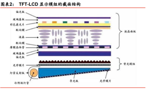 目前市場上所謂的 LCD主要指的是主動矩陣式的薄膜晶體管液晶顯示器(Thin Film Transistor LCD, TFT-LCD),包括了薄膜晶體管(TFT)和液晶顯示(LCD)兩項技術(shù), 即由薄膜晶體管控制的液晶顯示。