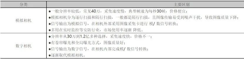 按照輸出信號方式:可以分為模擬相機、數(shù)字相機;