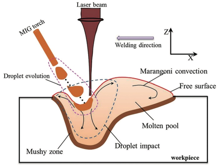 激光-電弧復(fù)合焊接兼具了激光焊接和電弧焊的優(yōu)點(diǎn):一是在雙熱源的作用下,焊接速度得以提高,熱輸入量變小,焊縫變形量小,保持了激光焊接的特點(diǎn);二是具有更好的橋接能力,裝配間隙容忍度更大;三是熔池的凝固速度變慢,有利于消除氣孔、裂紋等焊接缺陷,改善熱影響區(qū)組織和性能;四是由于電弧的作用,其能夠焊接高反射率、高導(dǎo)熱系數(shù)的材料,應(yīng)用材料的范圍更廣。