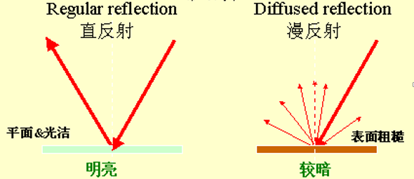 物體反射光線有兩種不同的反射特性:直反射和漫反射。