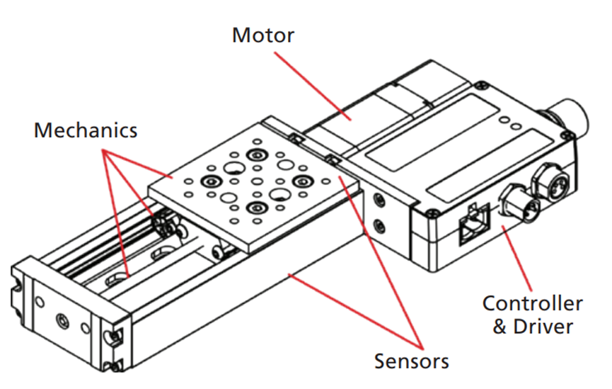 · 機械部件:實現(xiàn)負載的安全安裝,并能沿其移動軸引導(dǎo)負載。