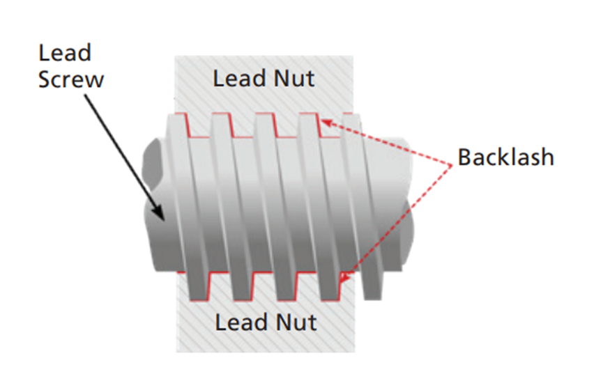 圖4:在由絲杠驅(qū)動的系統(tǒng)中,絲杠螺紋和螺母對應(yīng)螺紋之間的微小間隙,會導(dǎo)致機械松弛。