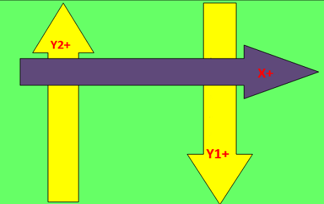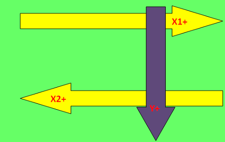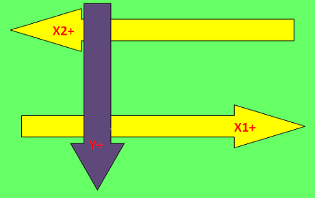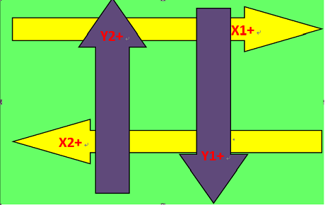 按平臺(tái)類(lèi)型(XXY、XYY、XXYY)圖示補(bǔ)償,系統(tǒng)會(huì)自動(dòng)按照平臺(tái)類(lèi)型定義補(bǔ)償圖示的軸0為X1或X2,以下圖為例: