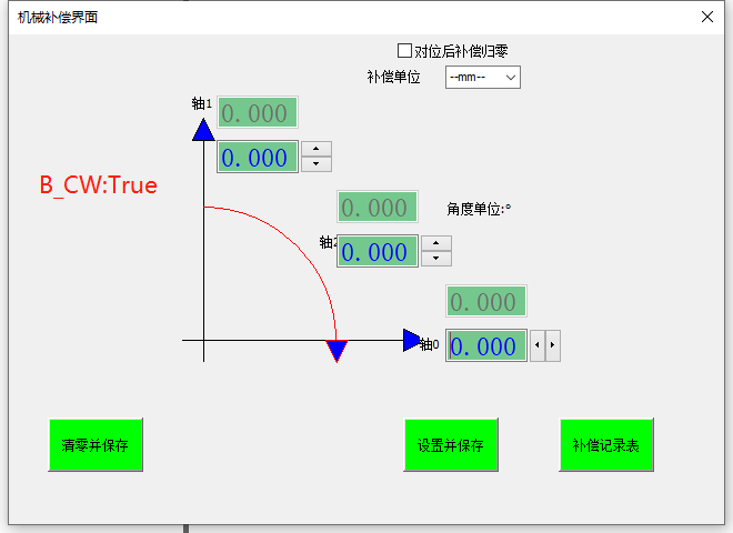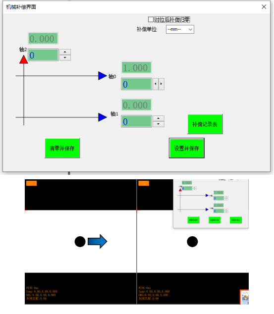 對(duì)應(yīng)所選擇的平臺(tái)類(lèi)型,找出XY所對(duì)應(yīng)的軸0、軸1、軸2(方向)來(lái)輸入補(bǔ)償值后,設(shè)置保存即可
