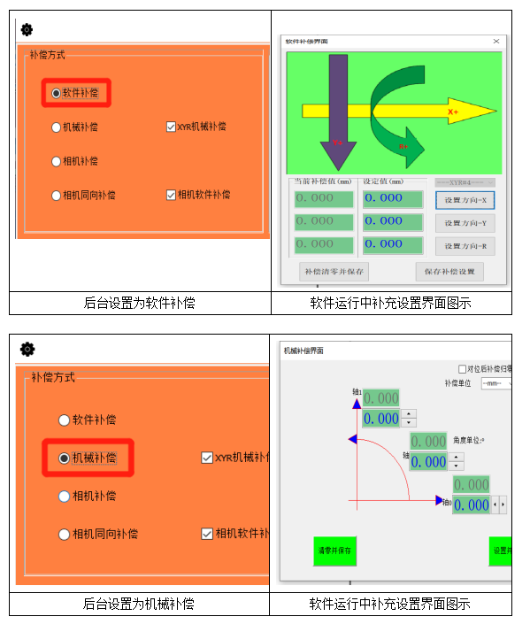 補(bǔ)償方式:相機(jī)同向補(bǔ)償+相機(jī)軟件補(bǔ)償