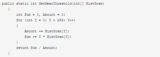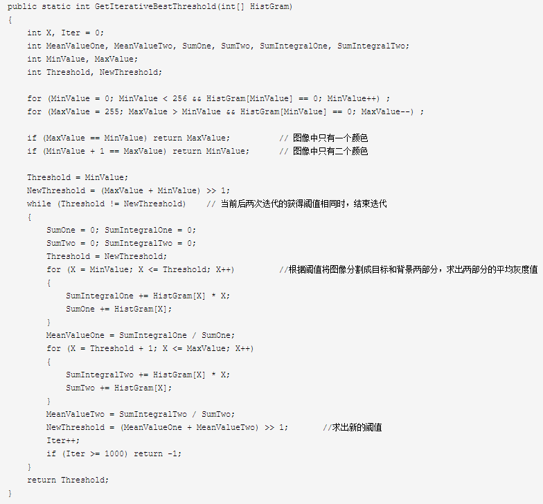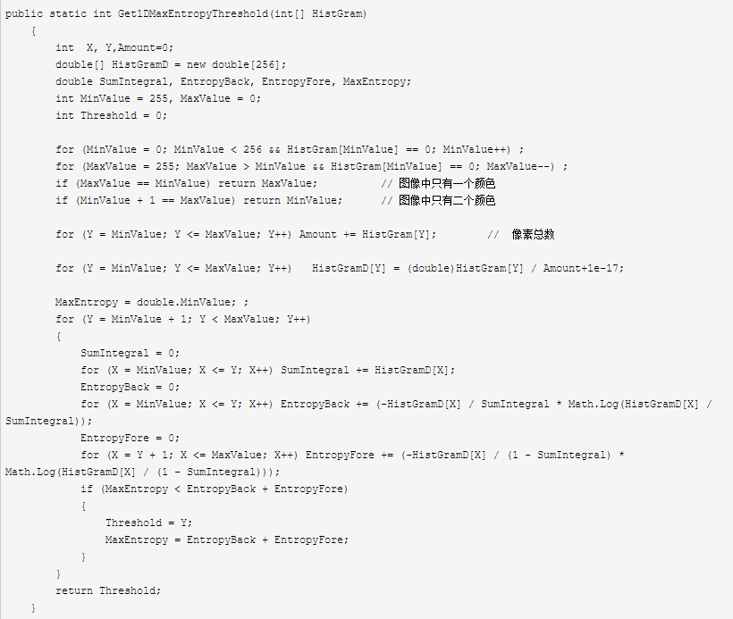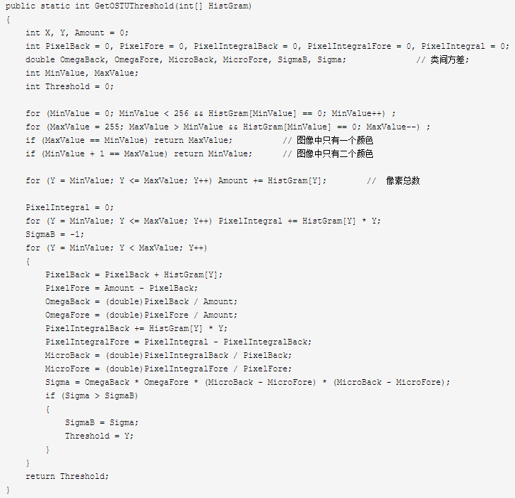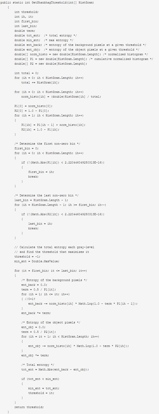 一行很多代碼是摘自開(kāi)源軟件ImageJ的資料,讀者也可以參考:http://fiji.sc/wiki/index.php/Auto_Threshold 這里獲得更多的信息。