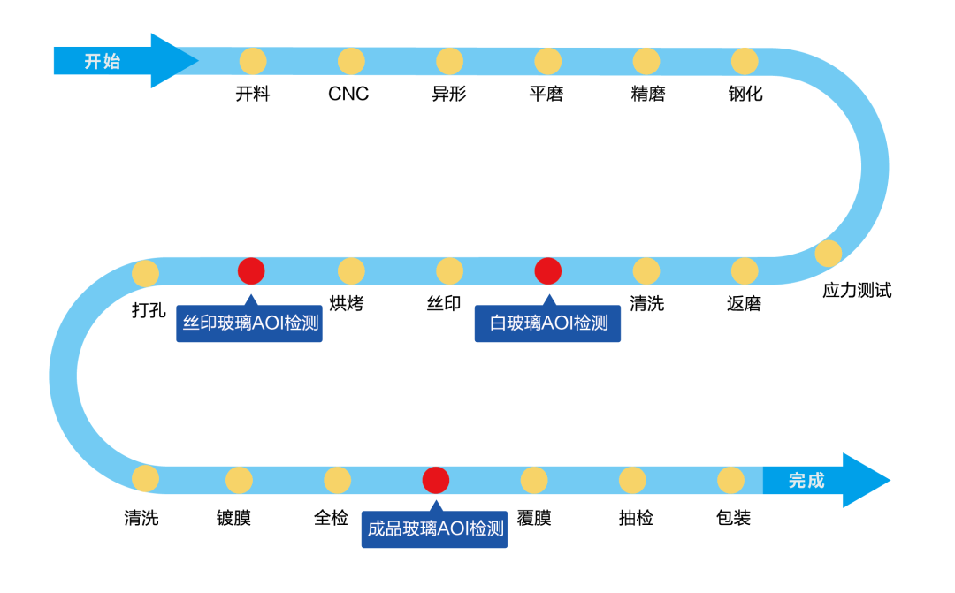 切割、CNC精雕、研磨、強(qiáng)化、絲印、鍍膜、清洗......每一片蓋板玻璃的生產(chǎn)過程十分繁雜不易,且為保證成品優(yōu)質(zhì)性,每一個環(huán)節(jié)都涉及到玻璃質(zhì)量的檢測。