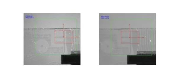 檢測(cè)LCD玻璃上的定位標(biāo)記,通過(guò)抓取MARK的特征標(biāo)記,來(lái)計(jì)算得出目前玻璃的位置和標(biāo)準(zhǔn)位置相比有多少的位移差,并反饋當(dāng)前的X/Y坐標(biāo)值到PC控制系統(tǒng),接下來(lái)有運(yùn)動(dòng)控制系統(tǒng)控制玻璃的切割過(guò)程。