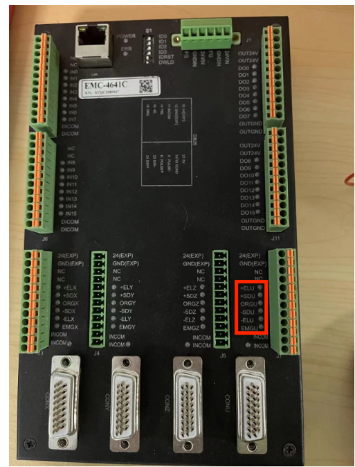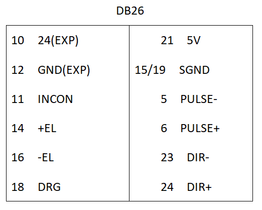第二種:只接DB26上面的針腳,接10、12、11、14、16、18、5、6、23、24 十個(gè)針腳,確認(rèn)針腳10(24v)、針腳12(0v)、針腳11(公共端)、針腳14(正限位)、針腳16(負(fù)限位)、針腳18(原點(diǎn))是否接好接對(duì),板卡上端口就不用接任何線了