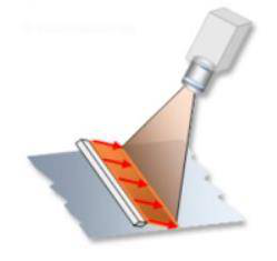 線掃描相機(jī)也可以用于實(shí)現(xiàn)暗場效果。為此,照明不會以反射角度對準(zhǔn)組件,而是明顯更平整。直接反射的光不會入射到相機(jī)上,因此像場顯得很暗,因此相機(jī)只能檢測到微弱的雜散光。該技術(shù)需要大量的光。刮痕,縫隙,高程或浮雕由于其表面不平整而在散射光時(shí)顯得明亮。檢測光滑材料表面缺陷的理想方法。