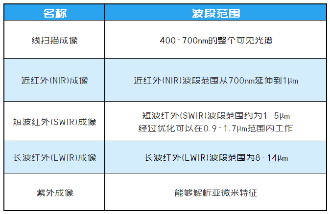 今天主要來(lái)說(shuō)一說(shuō)機(jī)器視覺(jué)鏡頭選擇和不同波長(zhǎng)的成像應(yīng)用。不同波長(zhǎng)的光在使用同一個(gè)鏡頭的時(shí)候會(huì)產(chǎn)生不同的效果,這跟鏡頭的透光率和色差等有關(guān)。而不同波長(zhǎng)的波段范圍成像主要應(yīng)用也不太一樣,這在實(shí)際項(xiàng)目應(yīng)用中具有重要參考意義,比如現(xiàn)在新冠肺炎疫情體溫檢測(cè)中應(yīng)用非常廣的長(zhǎng)波紅外(LWIR)成像,用于非接觸式溫度測(cè)量。
