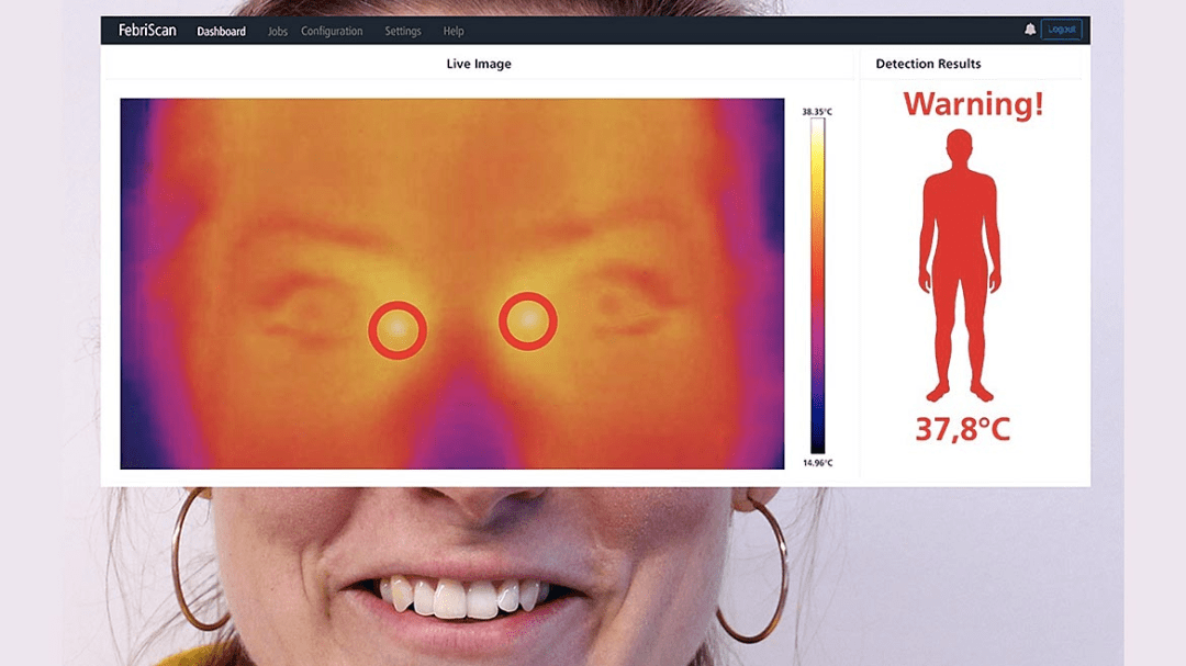 長(zhǎng)波紅外(LWIR)波段范圍為 8-14 μm。具有微測(cè)輻射熱計(jì)傳感器的LWIR相機(jī)使用自然發(fā)射的輻射(熱成像)可實(shí)現(xiàn)高達(dá)250℃的高精度表面溫度分布測(cè)量??梢栽谶h(yuǎn)距離、完全黑暗的環(huán)境中以及通過(guò)霧、灰塵、雨和煙霧檢測(cè)到熱輻射。應(yīng)用包括監(jiān)視、安全和救援,最近還用于在Covid-19(一般指新型冠狀病毒肺炎。新型冠狀病毒肺炎Corona Virus Disease 2019,COVID-19,簡(jiǎn)稱(chēng)“新冠肺炎”)大流行期間對(duì)人體進(jìn)行發(fā)燒篩查(圖 5)。工業(yè)應(yīng)用包括無(wú)損檢測(cè)和過(guò)程檢測(cè)。LWIR光學(xué)器件通常由鍺或硫?qū)倩锊牧现瞥?,例如Ge33As12Se55。硫?qū)倩锞哂信c鍺相似的光學(xué)和機(jī)械性能,但折射率不同。