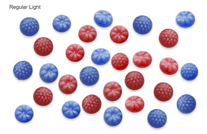 假設(shè)檢驗任務(wù)需要將紅色糖果從藍色糖果中分開,那么可使用紅光。紅色糖果完全反射紅光,因此顯得很亮,而藍色糖果主要吸收光,顯得很暗。