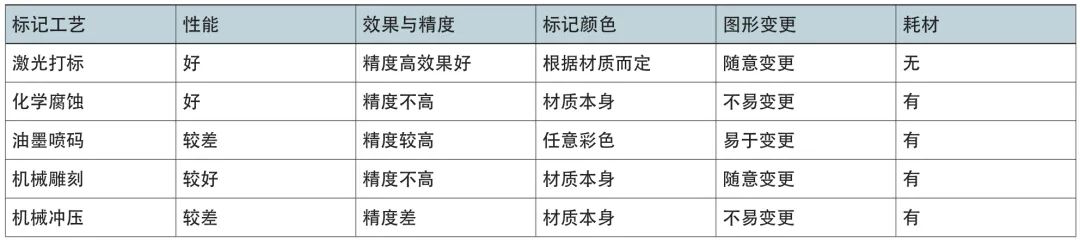 表1 幾種標(biāo)記工藝對比