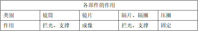各部件在整個光學(xué)系統(tǒng)中發(fā)揮著不可替代的作用,如下表: