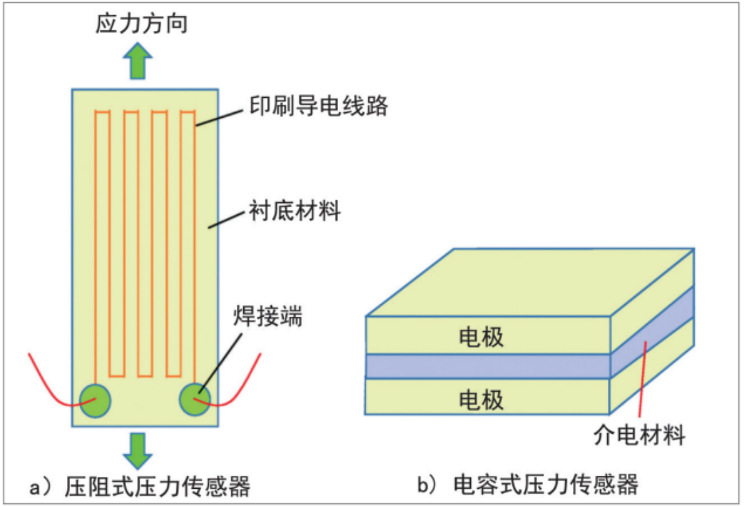 作為下一代電子產(chǎn)品,可穿戴電子設(shè)備可以與我們的身體相結(jié)合,以擴(kuò)展我們的感知能力,或提供實(shí)時(shí)的個(gè)人健康信息等。壓力感知能力是人類皮膚最基本而又最強(qiáng)大的特征之一。柔性有機(jī)聚合物和可拉伸壓力傳感器為模擬人類皮膚的傳感和柔軟的機(jī)械特性提供了一個(gè)潛在機(jī)會(huì)。同時(shí),具有高傳感性能的壓力傳感器在軟機(jī)器人、可穿戴電子設(shè)備、生物醫(yī)學(xué)設(shè)備和智能包裝中有著廣闊的應(yīng)用前景。目前,各種不同結(jié)構(gòu)的壓力傳感器已經(jīng)發(fā)展起來(lái),如電容式、壓阻式和壓電式。