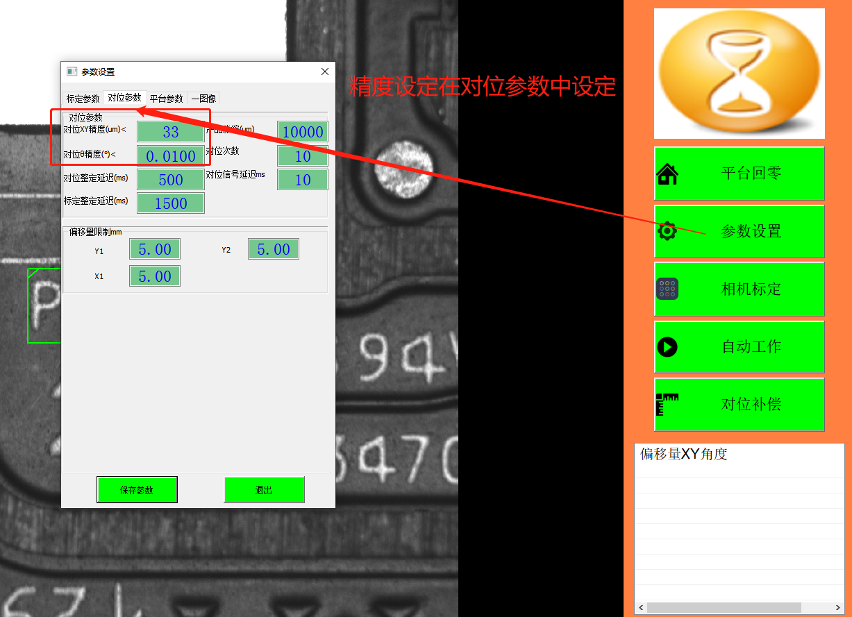 對位精度設(shè)定,一般情況下,建議設(shè)定為標(biāo)定后像素精度的1~2倍范圍內(nèi),比如我們標(biāo)定后得到的精度是0.01770mm/pixel,建議設(shè)定的精度范圍為0.0177mm~0.0354mm范圍內(nèi),若是需要設(shè)定更高的精度,需要保障圖像成像效果和平臺機(jī)構(gòu)的精度。