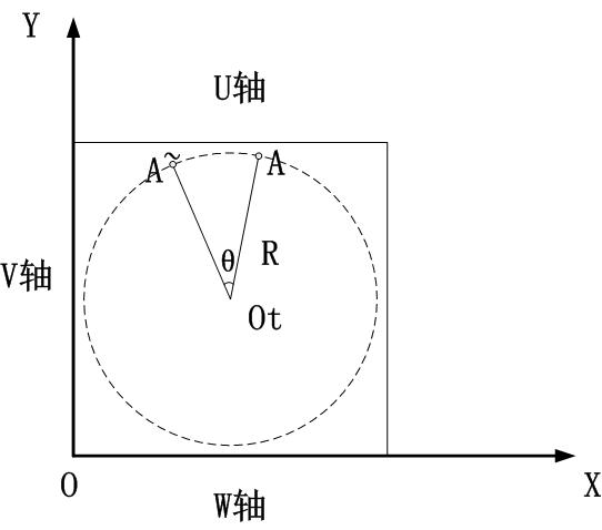 如果是UVW平臺,設(shè)U軸到平臺中心Ot的距離為UR,伺服電機(jī)可以的分辨率為10000個脈沖一圈,絲杠的導(dǎo)程Pitch為5mm,那這樣U軸的最小位移量Umin可以達(dá)到0.5um;將設(shè)當(dāng)UR=100mm時平臺可以旋轉(zhuǎn)的細(xì)分角度可以達(dá)到arctan(0.0005/100)。具體計算如下:
