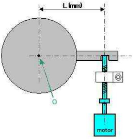 假設(shè)旋轉(zhuǎn)軸電機(jī)可以的分辨率為10000個脈沖一圈,絲杠的導(dǎo)程Pitch為5mm,那這樣旋轉(zhuǎn)軸的最小位移量Umin可以達(dá)到0.5um;將旋轉(zhuǎn)半徑R(即上圖中的L):R=100mm時平臺可以旋轉(zhuǎn)的細(xì)分角度可以達(dá)到arctan(0.0005/100)。具體計算如下: