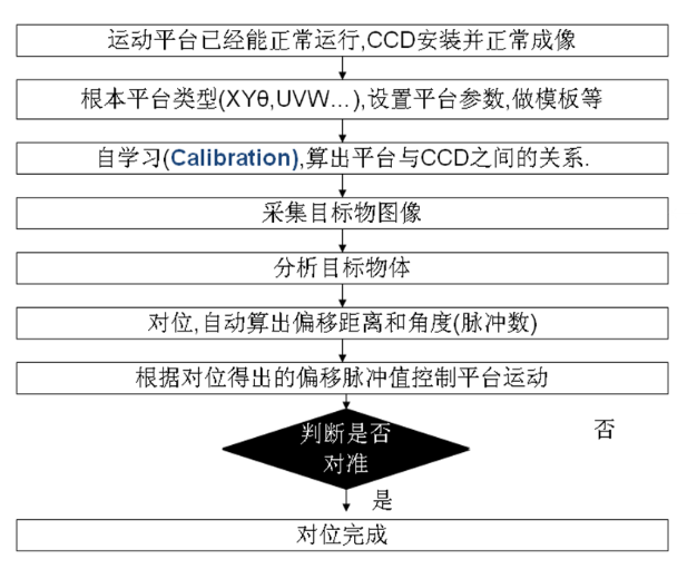 具有自動調(diào)整功能,相機(jī)安裝時,不需要很麻煩地吻合X、Y坐標(biāo)以及進(jìn)行相機(jī)->平臺坐標(biāo)轉(zhuǎn)換的復(fù)雜運算。若是檢測Mark點變化后,只需執(zhí)行自動調(diào)整,就可以簡單恢復(fù)到模板的位置,從而保證對位精度。若是產(chǎn)品變換,導(dǎo)致Mark點變換后,只需要重新對新的Mark點進(jìn)行模板學(xué)習(xí),即可完成對位操作。使得產(chǎn)品品種變更后實現(xiàn)自動對位也變得十分簡單。
