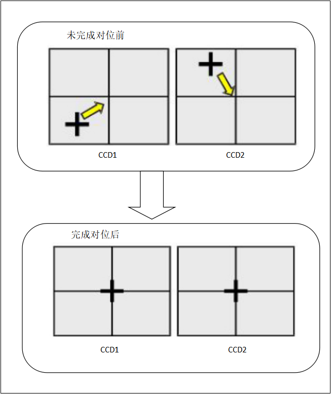 對位系統(tǒng)包是指,使用2~4顆相機(jī)針對目標(biāo)物(Mark點)的位置,2~4顆相機(jī)采集Mark點的信息,算出XYθ移動量。