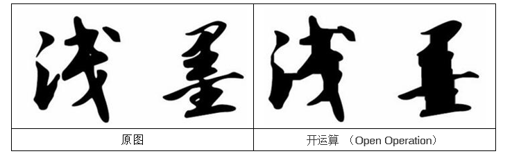 開運算可以 用來消除小物體、在纖細點處分離物體、平滑較大物體的邊界的同時并不明顯改變其面積。效果圖是這樣的: