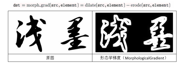 形態(tài)學(xué)梯度(Morphological Gradient)為膨脹圖與腐蝕圖之差,數(shù)學(xué)表達式如下: