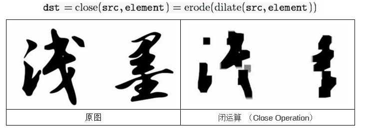 先膨脹后腐蝕的過程稱為閉運算(Closing Operation),其數(shù)學(xué)表達式如下: