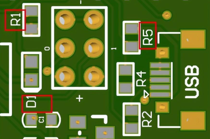 PCB 絲印是在 PCB 制造過程中完成的,但用于 PCB 組工藝步驟。下圖為成品圖上的絲印案例。