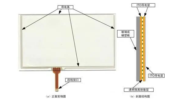 電阻觸摸屏一般分為四線電阻屏和五線電阻屏。