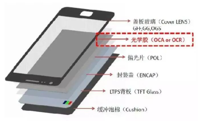 手機屏幕由3部分組成:保護玻璃、觸摸屏和顯示屏。