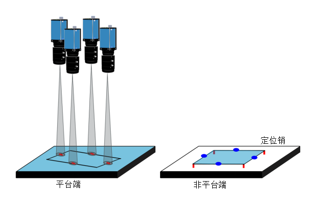 應用場景:彌補單目四Mark應用在較大尺寸產(chǎn)品時精度不夠的問題,相對單目四Mark精度更高