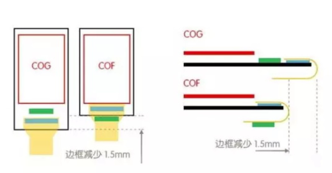 在進入“全面屏”時代之前,"COG"(Chip On Glass)是智能手機屏幕普遍采用的一種封裝技術(shù)。COG就是IC芯片被直接綁定(bonding)在LCD液晶屏幕的玻璃表面,這種封裝技術(shù)可以大大減小整個 LCD 模塊的體積,良品率高、成本低并且易于大批量生產(chǎn)。