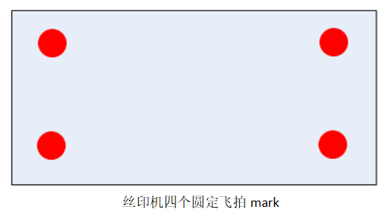 糾偏方法:如上圖所示,類似單目四Mark,區(qū)別在于單目四Mark是以矩形角點作為Mark點,絲印機四個圓定飛拍是以圓心作為Mark點。